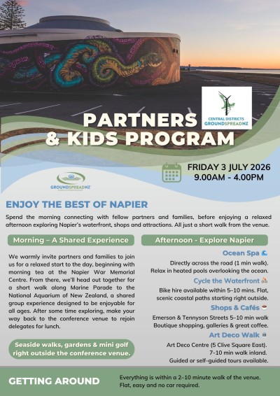 Make the most of your time in Napier with our dedicated Partners & Kids Program — a relaxed and enjoyable day designed for families and accompanying guests.